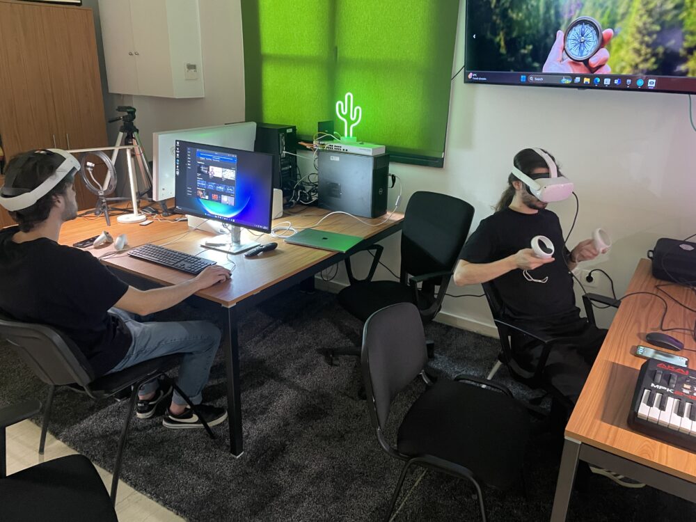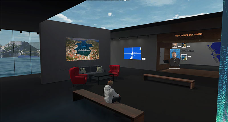 In addition to actual working spaces we also employ purpose-uilt virtual metaverse environments where our researchers collaborate. The Ionian Islands Film Offive of the Ionian Islands Region is depicted here, a fully functional “Ionian Islands Film Office Metaverse” space designed for collaboration between local officials and production teams